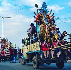 | The primary goddess revered during Durga Puja is Durga, but celebrations also include other major deities of Hinduism such as Lakshmi (the goddess of wealth and prosperity), Saraswati (the goddess of knowledge and music), Ganesha (the god of good beginnings), and Kartikeya (the god of war). In Bengali traditions, these deities are considered to be Durga's children, and Durga Puja is believed to commemorate Durga's visit to her natal home with her beloved children. The festival is preceded by Mahalaya, which is believed to mark the start of Durga's journey to her natal home. Primary celebrations begin on the sixth day (Shasthi), on which the goddess is welcomed with rituals. The festival ends on the tenth day (Vijaya Dashami), when devotees embark on a procession carrying the worshipped clay sculpture-idols to a river, or other water bodies, and immerse them, symbolic of her return to the divine cosmos and her marital home with Shiva in Kailash. Regional and community variations in celebration of the festival and rituals observed exist. Durga Puja is an old tradition of Hinduism, though its exact origins are unclear. Surviving manuscripts from the 14th-century provide guidelines for Durga Puja, while historical records suggest that royalty and wealthy families were sponsoring major Durga Puja festivities since at least the 16th-century. The prominence of Durga Puja increased during the British Raj in the provinces of Bengal, Odisha, Bihar, Jharkhand, eastern Uttar Pradesh and Assam. However, in modern times, the importance of Durga Puja is more as a social and cultural festival than a religious one, wherever it is observed. |