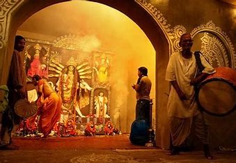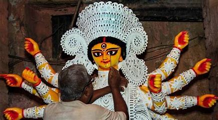 | Durga Puja , also known as Durgotsava or Shaaradotsava, is an annual festival originating in the Indian subcontinent which reveres and pays homage to the Hindu goddess Durga, and is also celebrated because of Durga's victory over Mahishasura. It is the biggest festival of Bengali Hindus and the Indian state of West Bengal. A 2019 study by the British Council estimated the economic value of creative industries associated with Durga Puja in West Bengal at ₹32,377 crores (2.6% of the state's GDP in that financial year). West Bengal's capital city Kolkata's Durga Puja has been inscribed on the intangible cultural heritage list of UNESCO in December 2021.