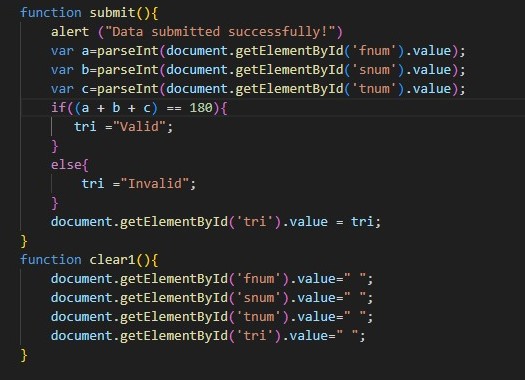 Q9. WAP to accept three angles of a triangle and check the triangle is valod or no. The triangle is valid if the total of three angle = 180 degrees
