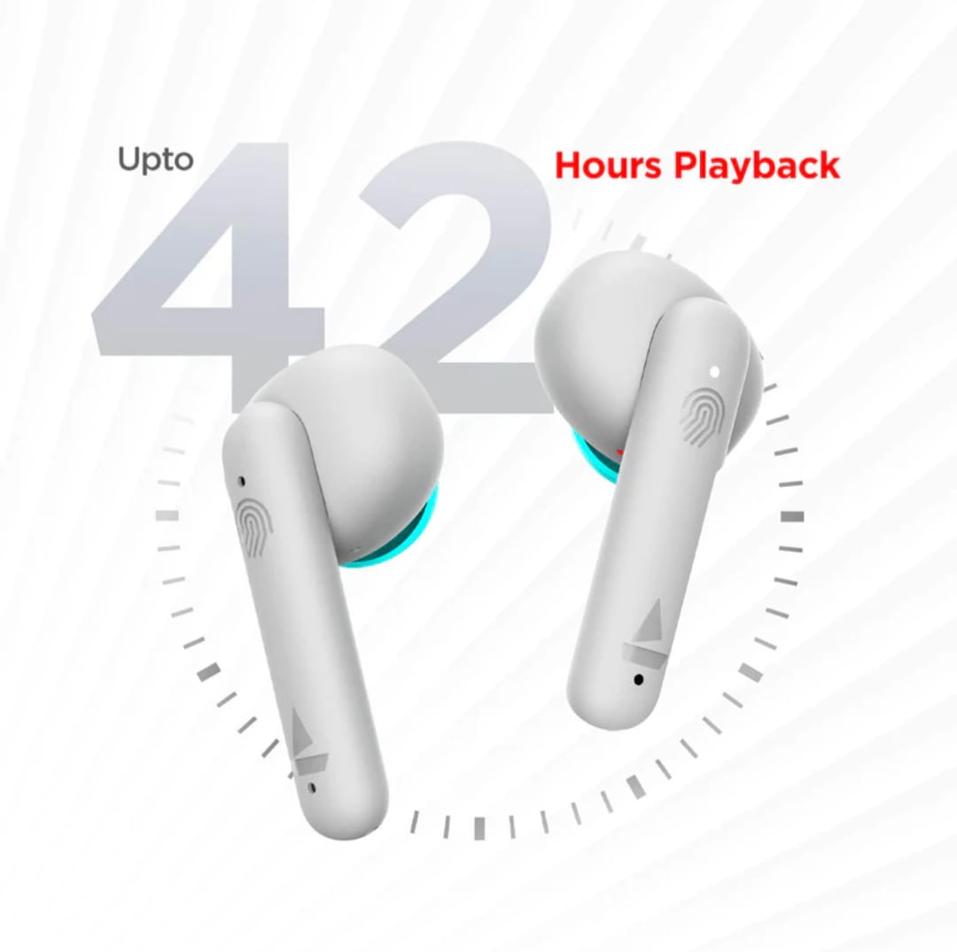 Sleek. Comfortable. Stylish. And a Splash of Incredible Colours. Bring alive your favourite sounds with these true wireless earbuds Equipped with 13mm drivers for the magical boAt signature sound. Designed for supreme ease with Insta Wake N’ Pair technology that auto connects the moment it’s out of the case and Type C Charging. Tws earbuds to drown all the sounds you don’t need and live every moment. With a battery capacity of 40mAh for each earbud, indulge in a blissful audio experience for up to 3 hours in a go. Tap into instant wireless functionality with optimum Bluetooth V5.0
