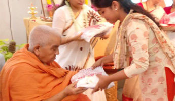 On 2nd October, 2016, Sunday, the Mother of the Universe, was worshipped in living images at Rasik Bhita amidst the chanting of Chandistotras . New clothes were distributed among 69 economically disadvantaged students of Rasik Bhita by Revered SadhanapranaMataji, Trustee.