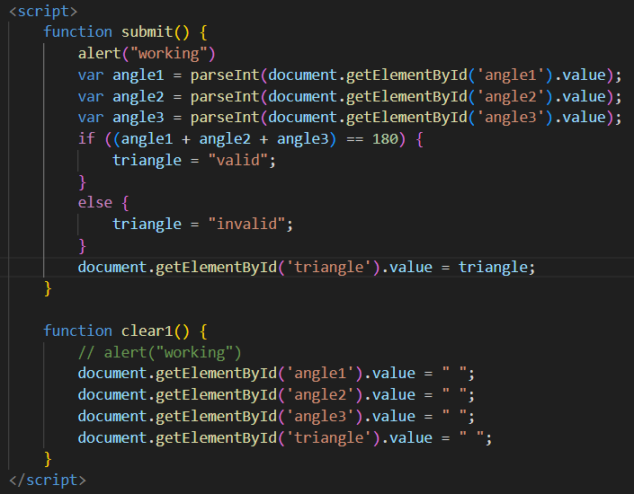 Q9. Write a program to accept three angles of a triangle and check the triangle is valid or not. The triangle is valid if the total of three angle = 180 degrees..