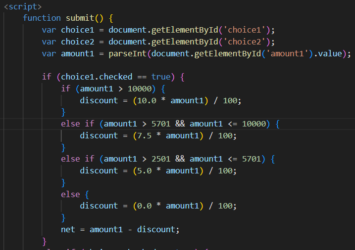 Write a program based on the above criteria - amount of purchase and the type of purchsed (L for Laptop and D for Desktop) by a customer. Compute and print the net amount to be paid by the customer along with his name and address.