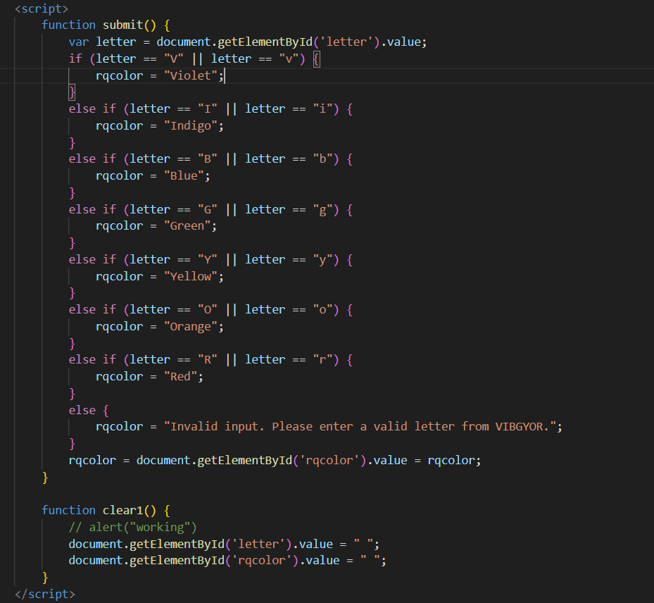 Q13. Write a program to display the color of the spectrum(VIBGYOR) according to the user's choice.