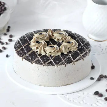 sponge cake infused with its deep, dark essence. This half-kg cake is adorned with a luscious