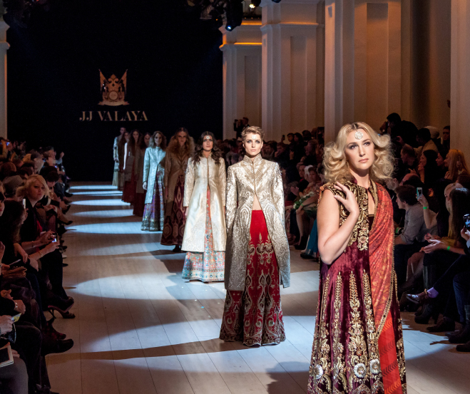 In 2001, JJ Valaya spring summer collection showcased during the haute couture week in Paris. JJ Valaya