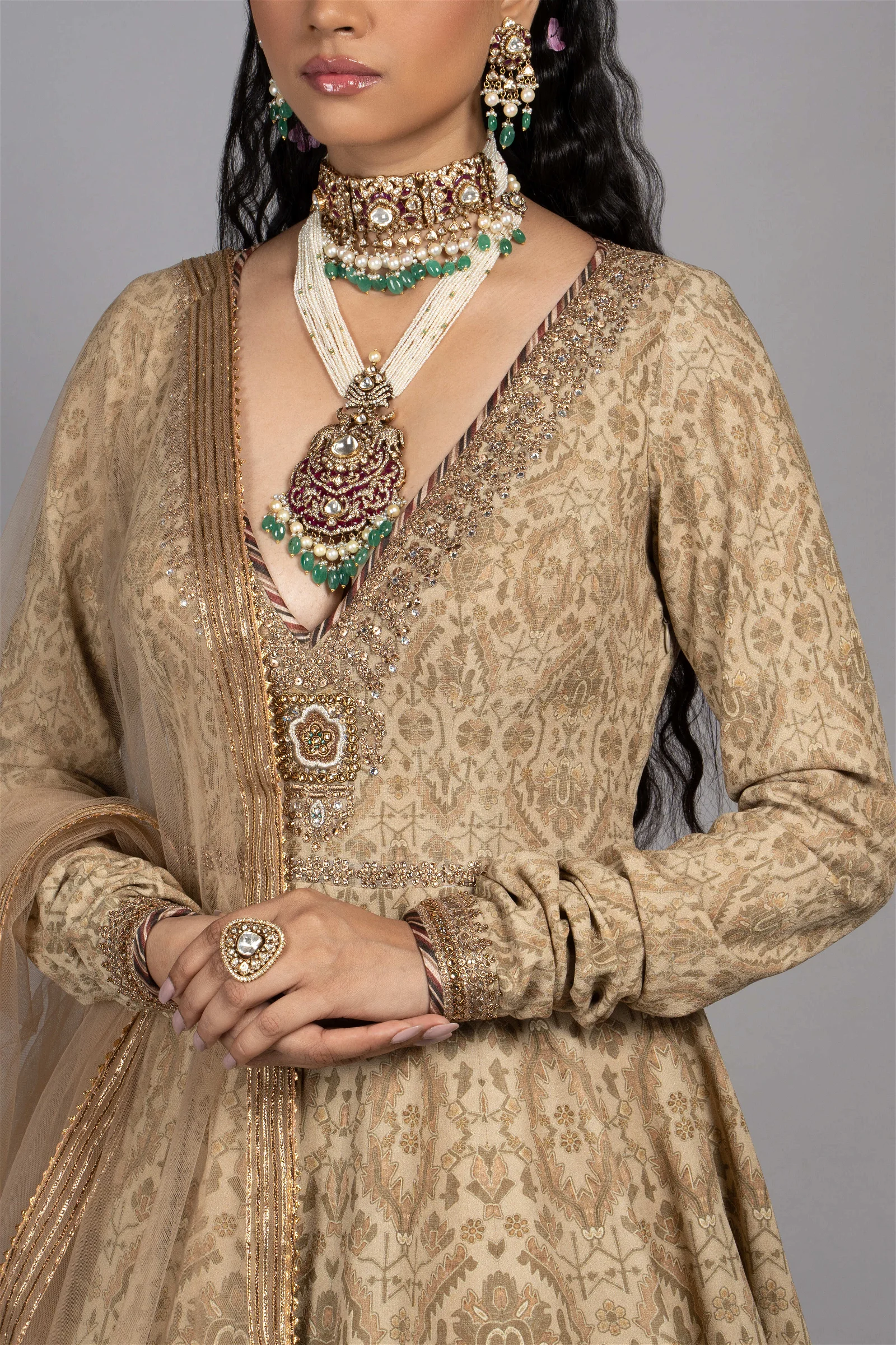 The philosophy of JJ Valaya is to create for today, not for tomorrow. JJ Valaya has been hugely motivated by history and wants to make it relevant today. Customers have access to the finest in the world today. JJ Valaya offers a mix of royalty and elegance. JJ Valaya's pieces showcase appreciation of history and find great magic in exploring the mysteries of various cultures to create something new. JJ Valaya believes Indian fashion houses must take the responsibility to nurture crafts and artisans. The designer is fascinated by beads, metals, buttons, gemstones, and sequins. As per the designer, embroidery is a medium that lends itself to anything that the mind can perceive. The use of metal embroidery is common in the designer's work. The presence of materials like dabka, kora, and mukaish is spotted in his designs in a contemporary way. JJ Valaya believes in experimenting with the medium without compromising on the purity of the technique.