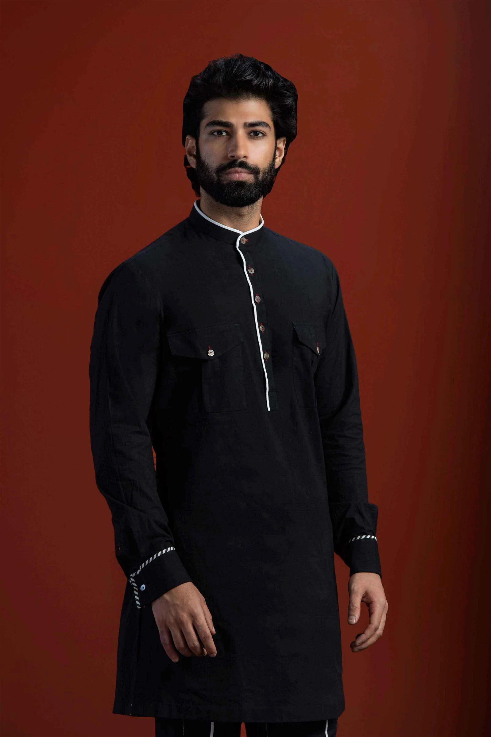 The Kurta Has Got A Chevron Piping Detail Around The Cuffs. Please Note That The Britches Are Not A Part Of This Set.