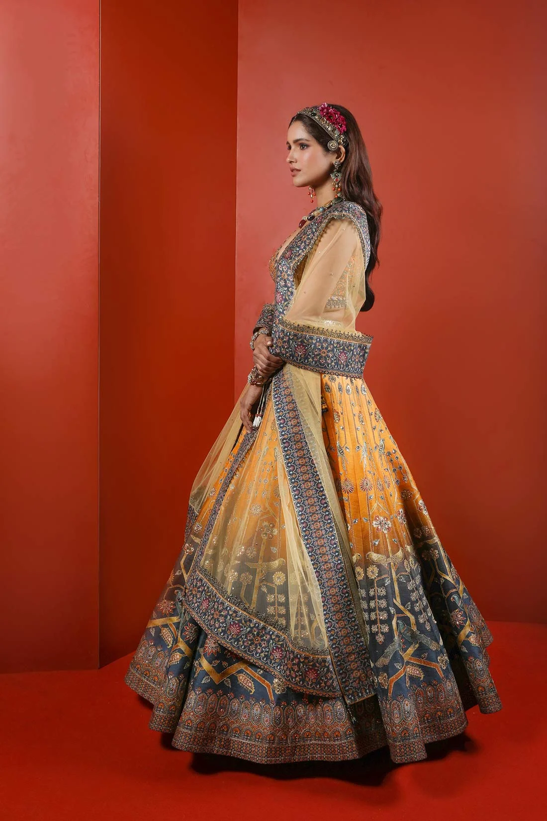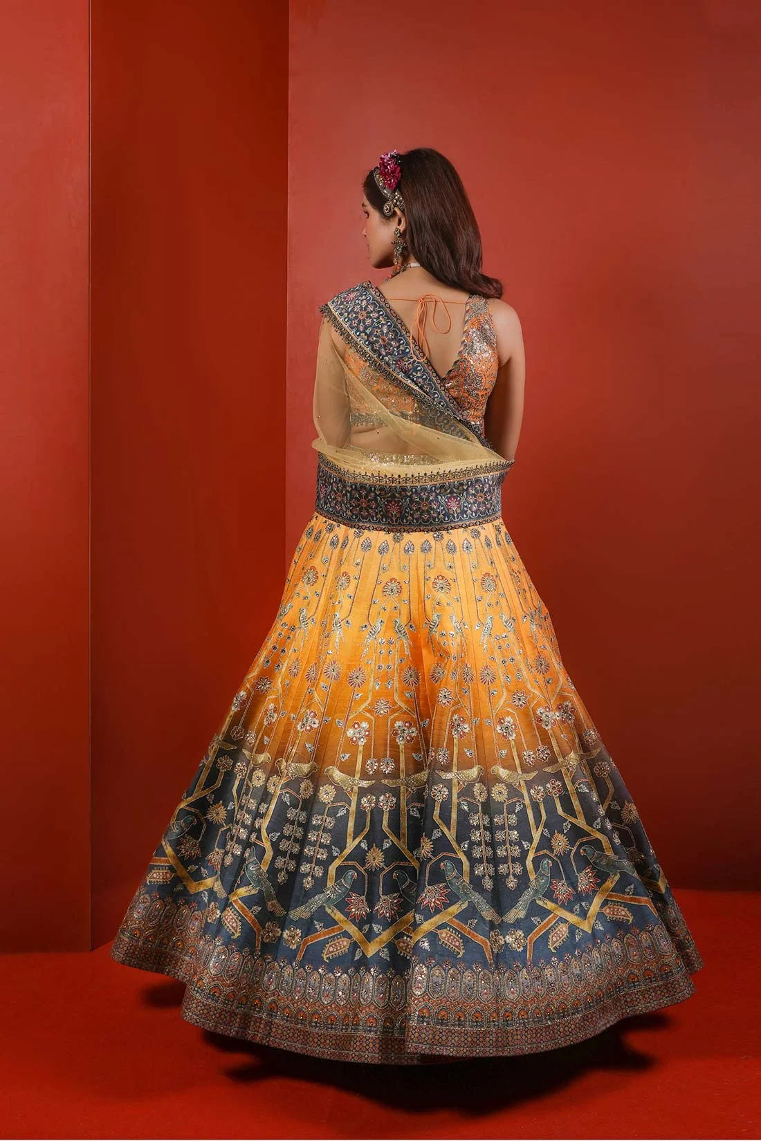 YELLOW TO BLUE OMBRE PRINTED LEHENGA