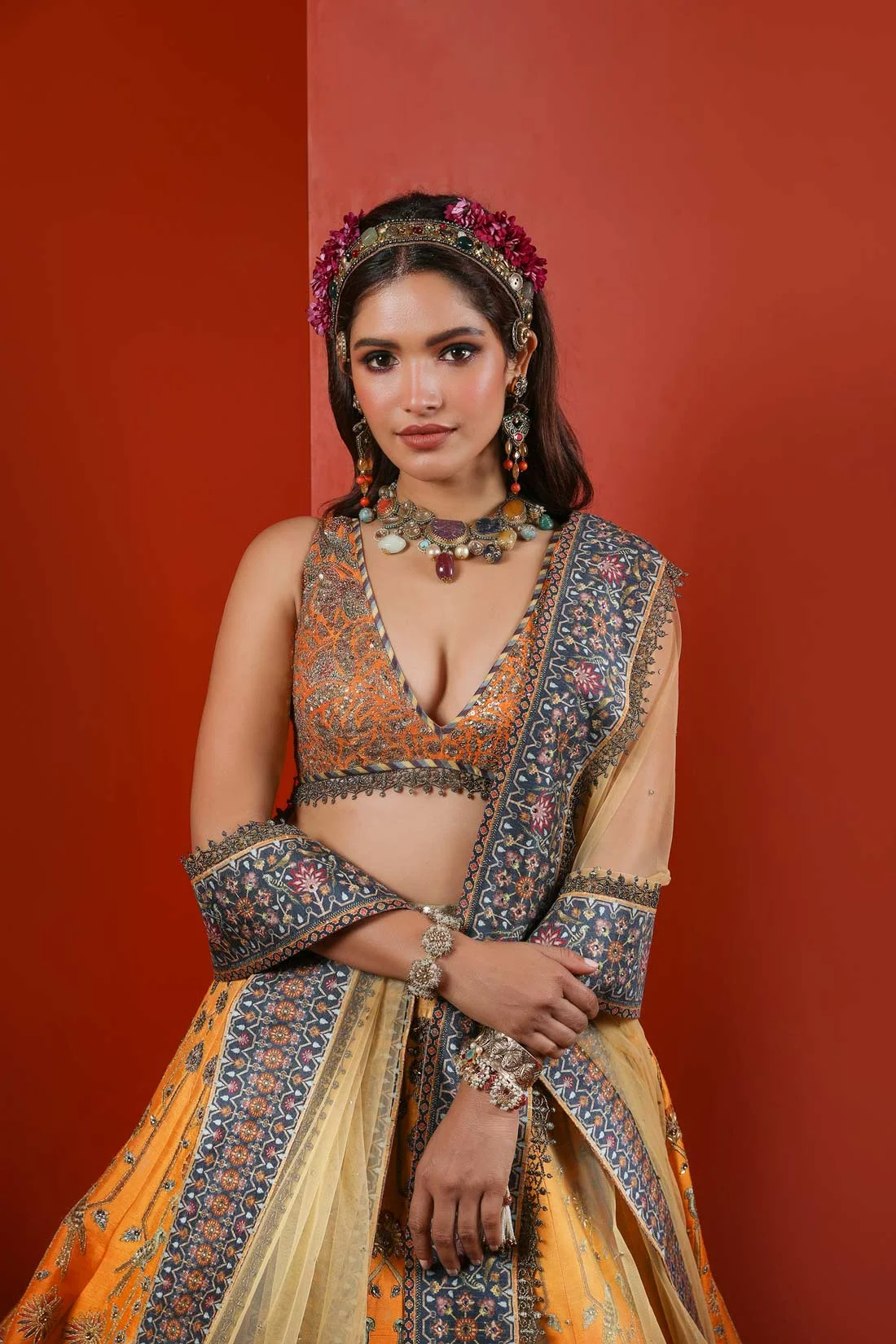 Blouse: Raw Silk | Lehenga: Slubless | Stole: Tulle | Care: Dry Clean Only