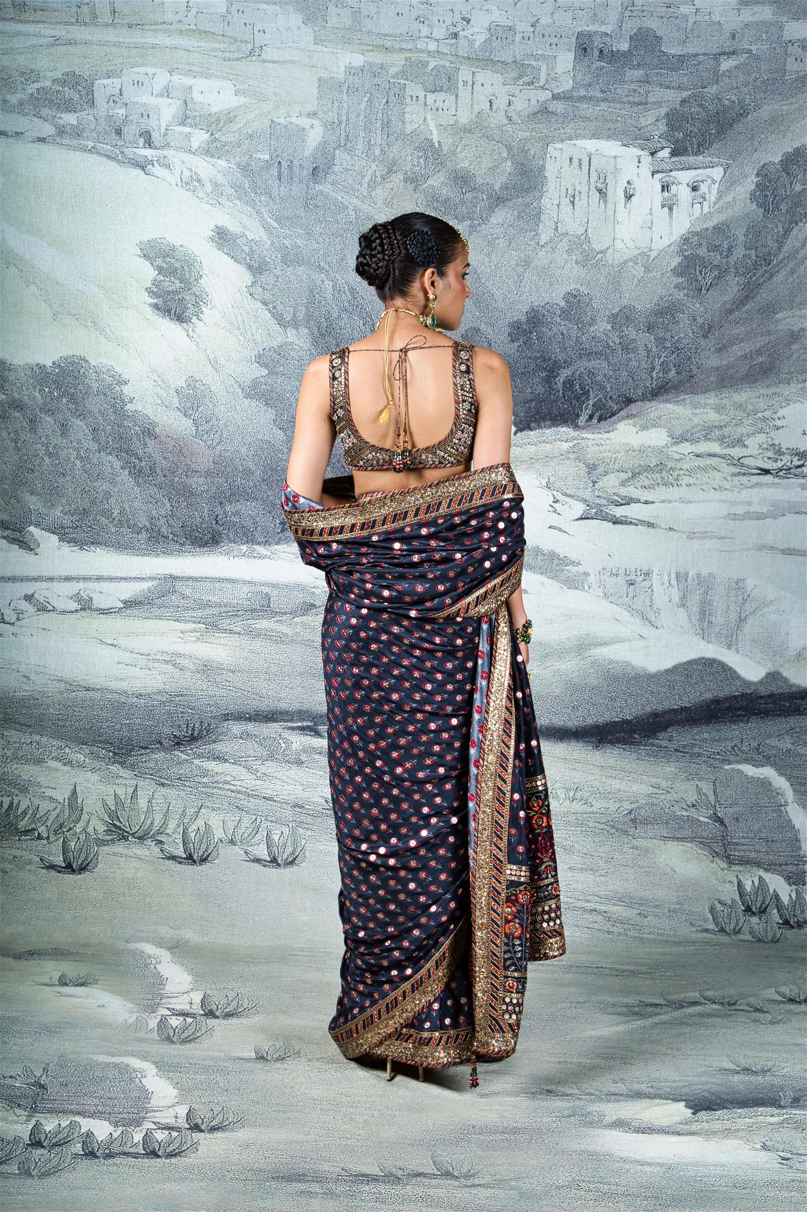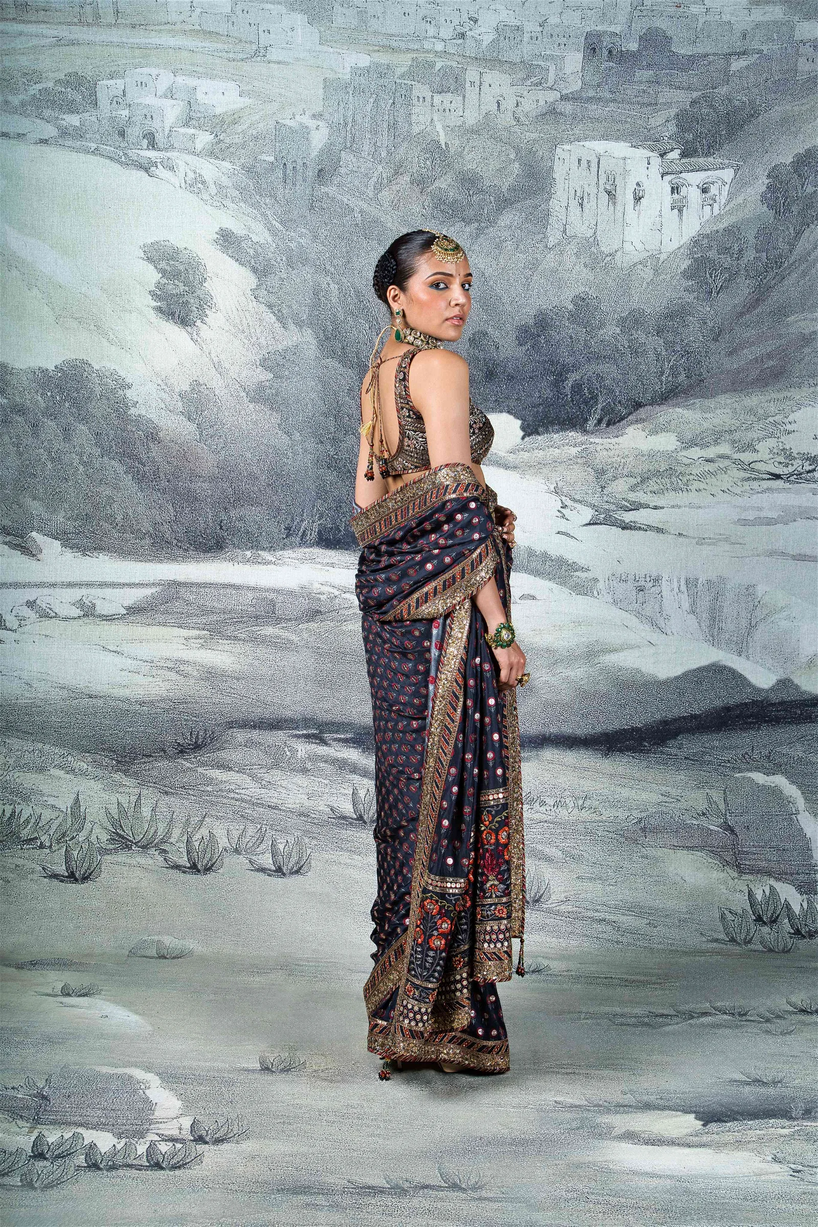 BLACK PRINTED AND EMBROIDERED SAREE SET