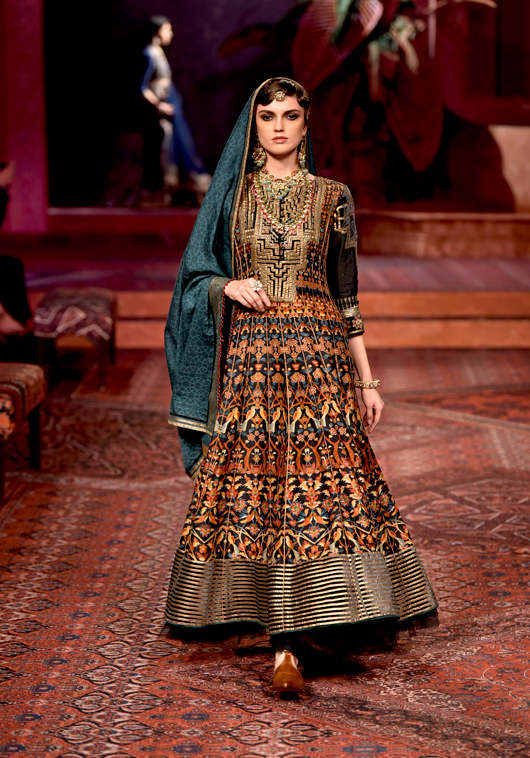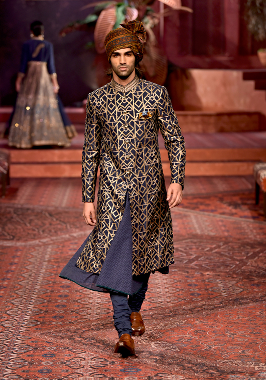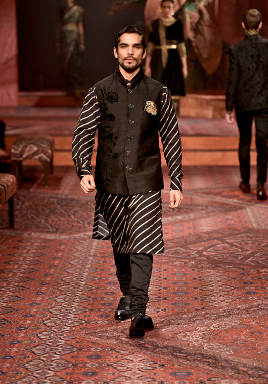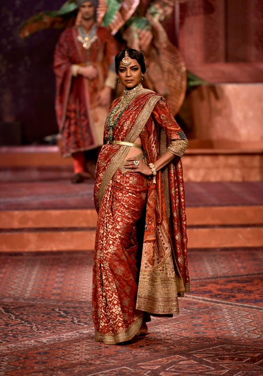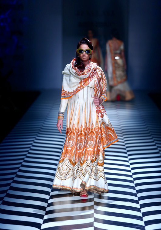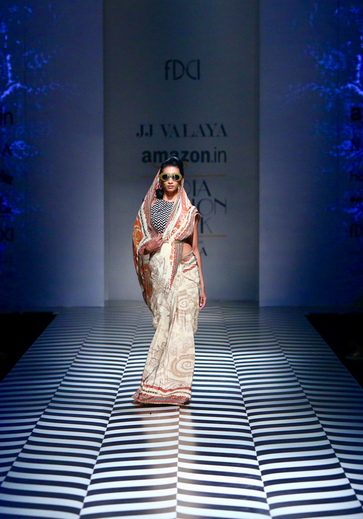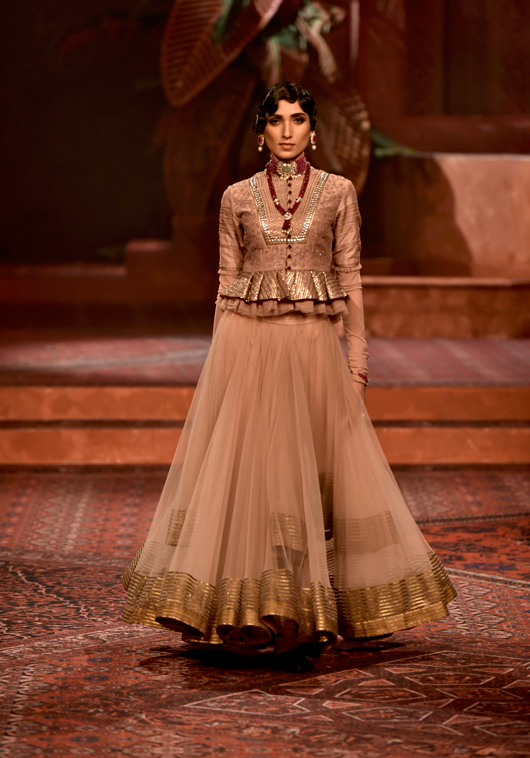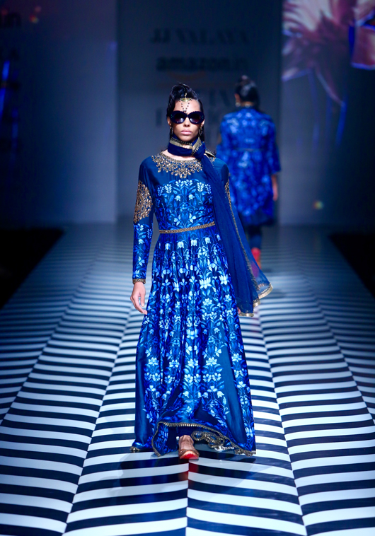 The philosophy of JJ Valaya is to create for today, not for tomorrow. JJ Valaya has been hugely motivated by history and wants to make it relevant today. Customers have access to the finest in the world today. JJ Valaya offers a mix of royalty and elegance. JJ Valaya's pieces showcase appreciation of history and find great magic in exploring the mysteries of various cultures to create something new. JJ Valaya believes Indian fashion houses must take the responsibility to nurture crafts and artisans. The designer is fascinated by beads, metals, buttons, gemstones, and sequins. As per the designer, embroidery is a medium that lends itself to anything that the mind can perceive. The use of metal embroidery is common in the designer's work. The presence of materials like dabka, kora, and mukaish is spotted in his designs in a contemporary way. JJ Valaya believes in experimenting with the medium without compromising on the purity of the technique.