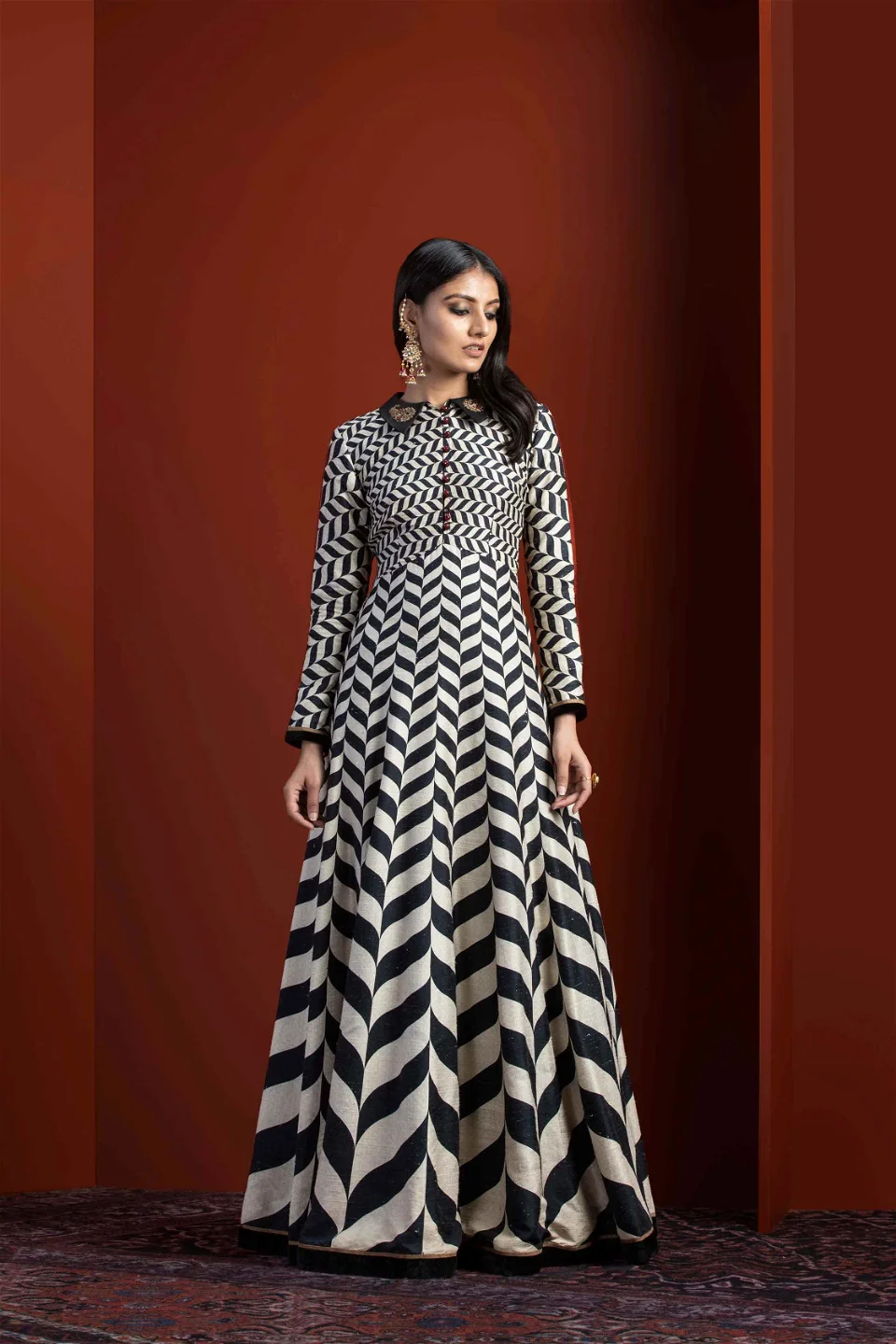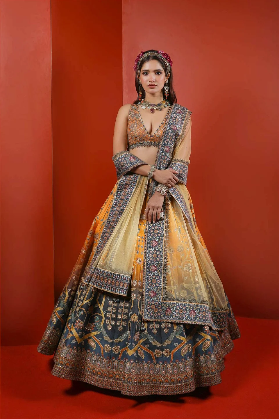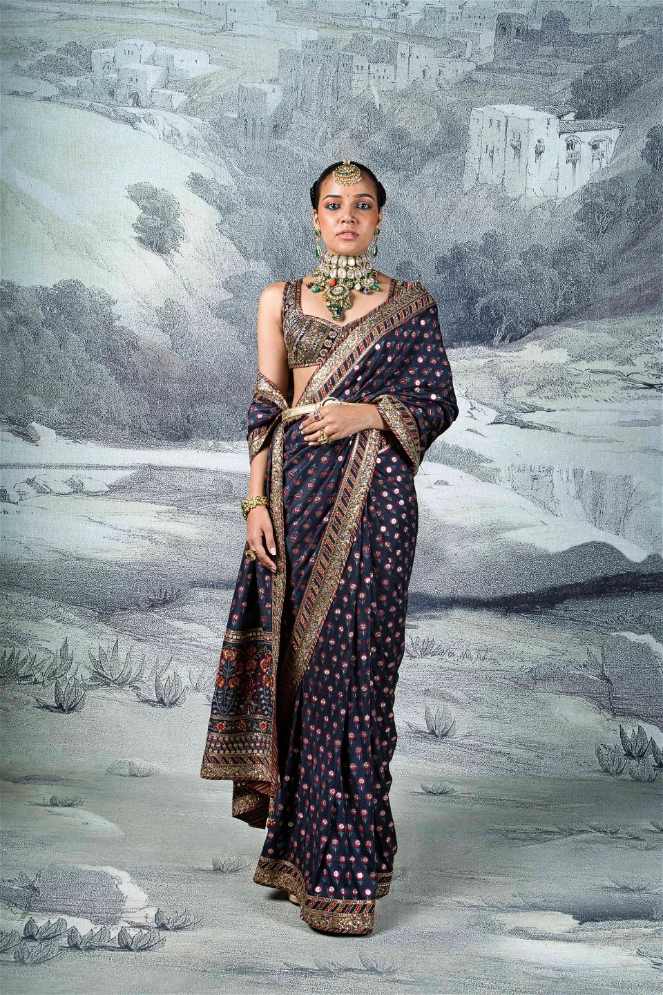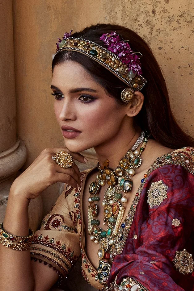 The philosophy of JJ Valaya is to create for today, not for tomorrow. JJ Valaya has been hugely motivated by history and wants to make it relevant today. Customers have access to the finest in the world today. JJ Valaya offers a mix of royalty and elegance. JJ Valaya's pieces showcase appreciation of history and find great magic in exploring the mysteries of various cultures to create something new. JJ Valaya believes Indian fashion houses must take the responsibility to nurture crafts and artisans. The designer is fascinated by beads, metals, buttons, gemstones, and sequins. As per the designer, embroidery is a medium that lends itself to anything that the mind can perceive. The use of metal embroidery is common in the designer's work. The presence of materials like dabka, kora, and mukaish is spotted in his designs in a contemporary way. JJ Valaya believes in experimenting with the medium without compromising on the purity of the technique.