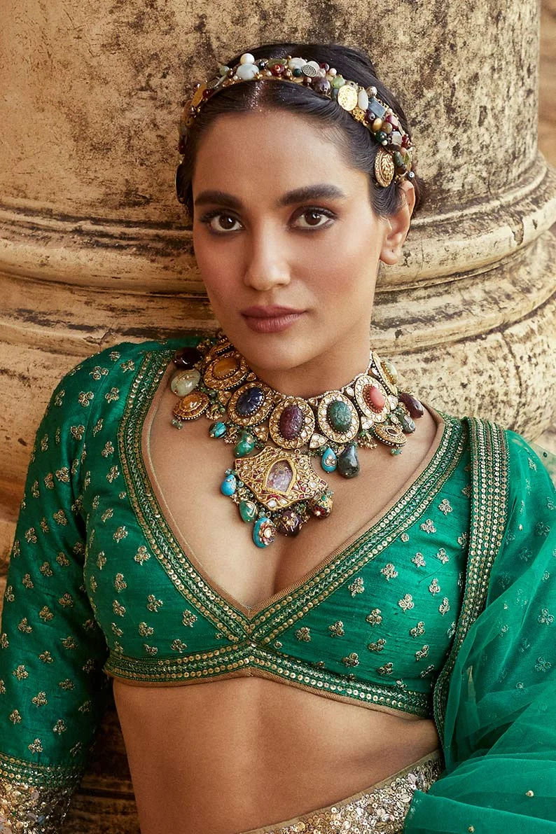 JJ Valaya is well-known for his couture, regal designs, and bridal wear. Over the past three decades, JJ Valaya has been designing clothing for men and women. The designer offers bridal, evening, day, and ready-to-wear collections. He is best known for lavishly using metal embroidery, gemstones, and beads in his creation.JJ Valaya sarees, dresses, skirt sets, lehenga, kurta sets for women, suit sets, and jackets are for the fashionable contemporary woman. He also offers designer menswear fashion with a wide range of sherwanis, embroidered kurtas for men, Nehru jacket sets, britches, bandhgala, jackets, kurtas, and shirts.
