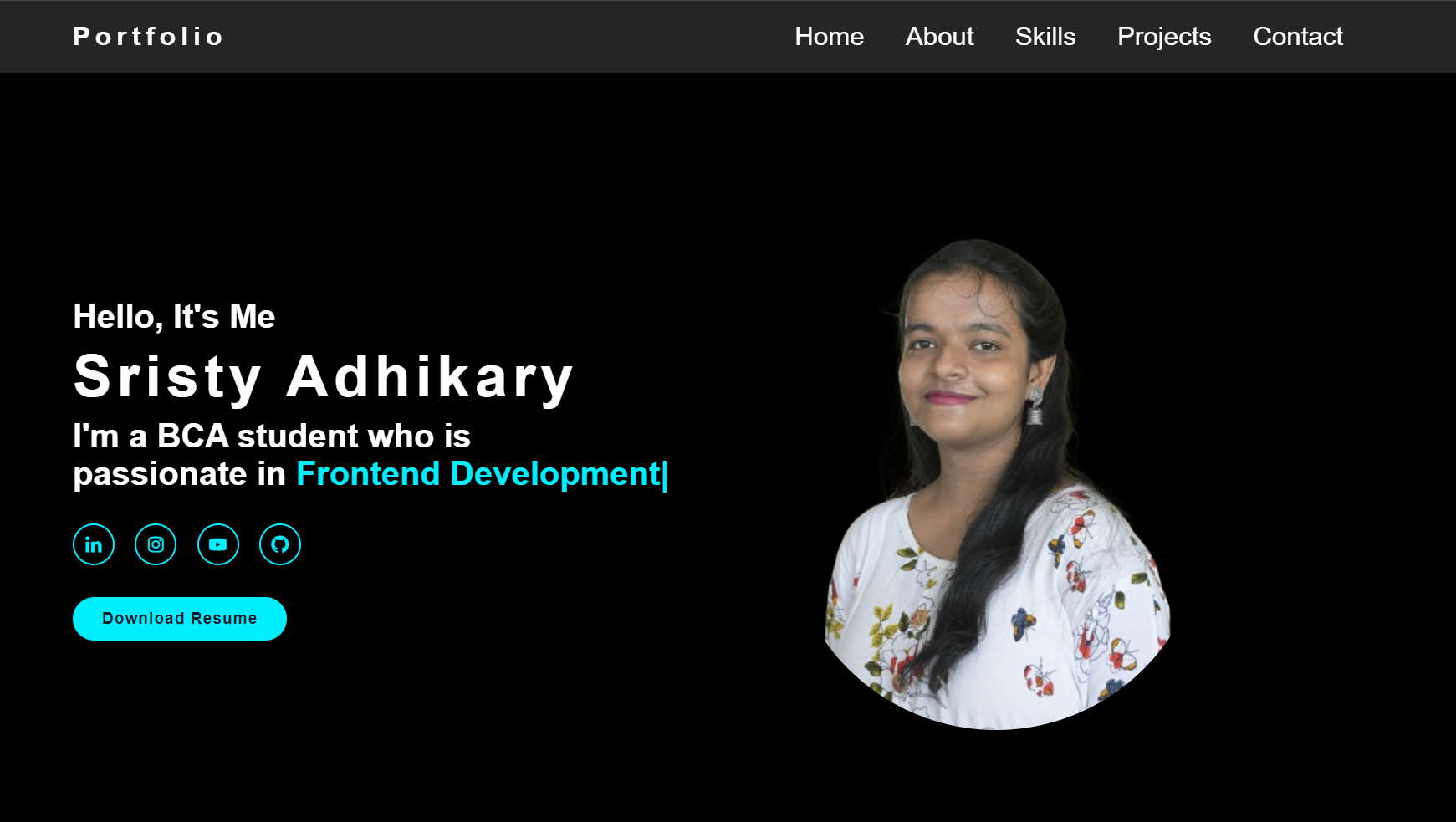 Hello! I'm Sristy Adhikary, a passionate and detail-oriented full stack web developer and BCA student. With a strong foundation in computer science and a keen interest in building dynamic web applications, I create responsive, scalable, and maintainable digital experiences that meet and exceed client expectations.