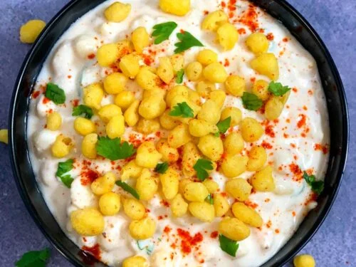 Boondi ka Raita is a delicious raita recipe made yogurt, small fried chickpea flour balls.