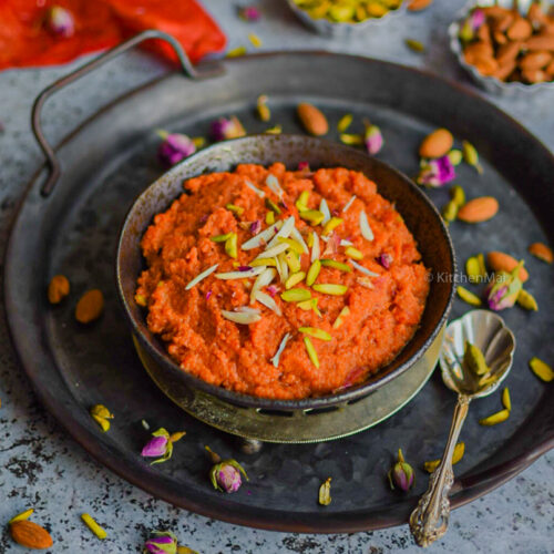 Carrot based sweet dessert pudding prepared in desi ghee.
