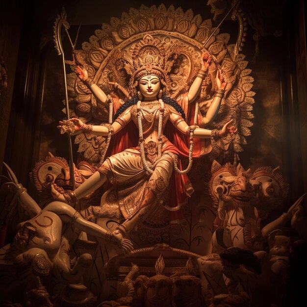 The primary goddess revered during Durga Puja is Durga, but celebrations also include other major deities of Hinduism such as Lakshmi (the goddess of wealth and prosperity), Saraswati (the goddess of knowledge and music), Ganesha (the god of good beginnings), and Kartikeya (the god of war). In Bengali traditions, these deities are considered to be Durga's children, and Durga Puja is believed to commemorate Durga's visit to her natal home with her beloved children. The festival is preceded by Mahalaya, which is believed to mark the start of Durga's journey to her natal home. Primary celebrations begin on the sixth day (Shasthi), on which the goddess is welcomed with rituals. The festival ends on the tenth day (Vijaya Dashami), when devotees embark on a procession carrying the worshipped clay sculpture-idols to a river, or other water body, and immerse them, symbolic of her return to the divine cosmos and her marital home with Shiva in Kailash. Regional and community variations in celebration of the festival and rituals observed exist |