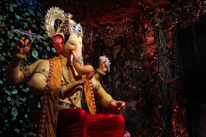 Ganesh Chaturthi (ISO: Gaṇeśa Caturthī), also known as Vinayak Chaturthi (Vināyaka Caturthī) or Ganeshotsav (Gaṇeśōtsava), is a Hindu festival that tributes Hindu deity Ganesha. The festival is marked with the installation of Ganesha's clay murtis (devotional representations of a deity) privately in homes and publicly on elaborate pandals (temporary stages). Observances include chanting of Vedic hymns and Hindu texts, such as prayers and vrata (fasting). Offerings and prasada from the daily prayers, that are distributed from the pandal to the community, include sweets such as modak as it is believed to be a favourite of Lord Ganesha. The festival ends on the tenth day after start, when the Murti is carried in a public procession with music and group chanting, then immersed in a nearby body of water such as a river or sea, called visarjana on the day of Ananta Chaturdashi. In Mumbai alone, around 150,000 Murtis are immersed annually. Thereafter the clay Murti dissolves and Ganesha is believed t o return to his celestial abode |